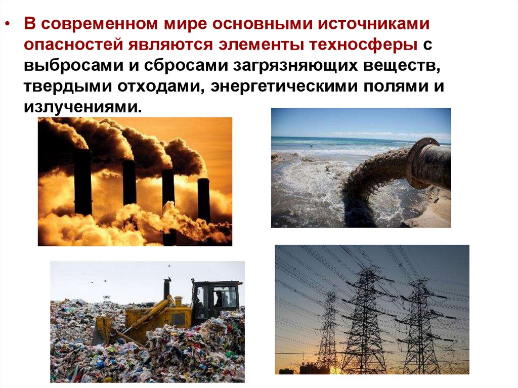 • В современном мире основными источникамиопасностей являются элементы техносферы с