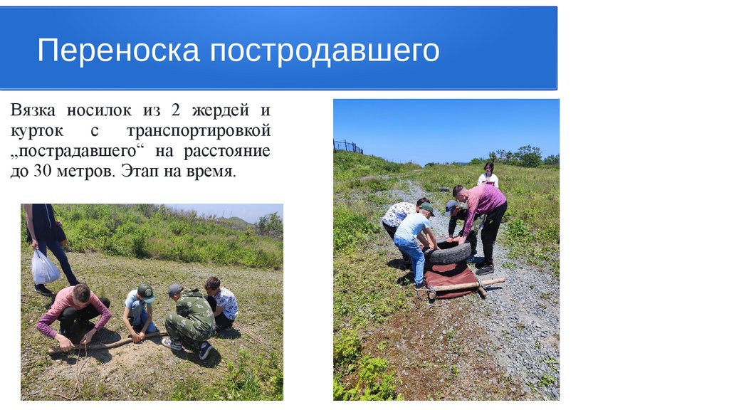 Переноска постродавшегоВязка носилок из 2 жердей и