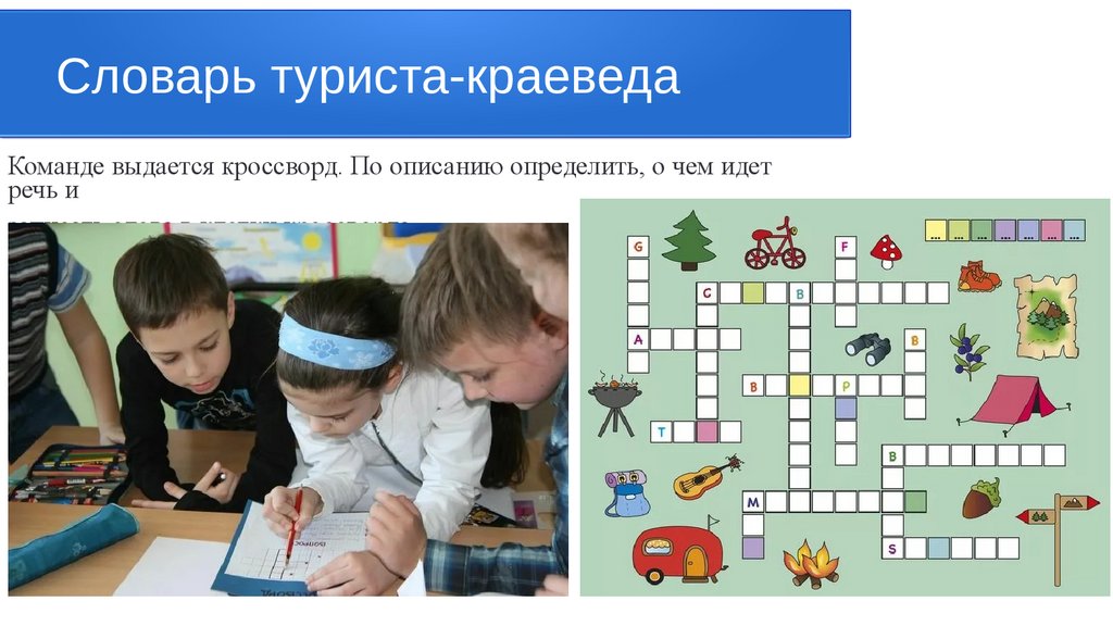 Словарь туриста-краеведаКоманде выдается кроссворд. По описанию определить, о чем идет