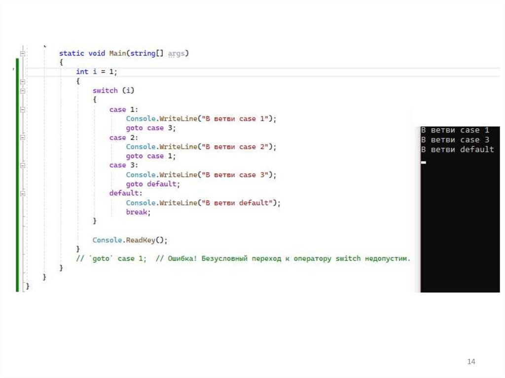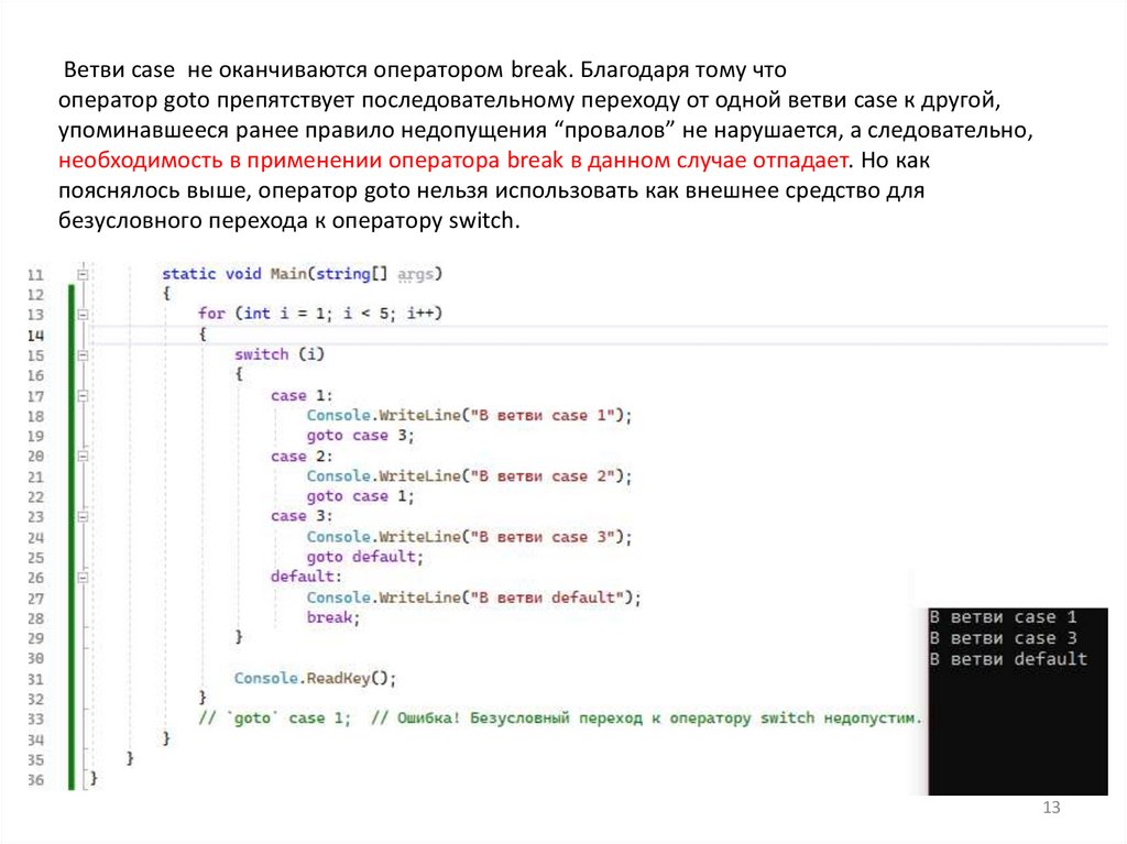 10. Получение результата аналогично циклу FOR goto представляет собой оператор безусловного перехода метка — действительный в C#