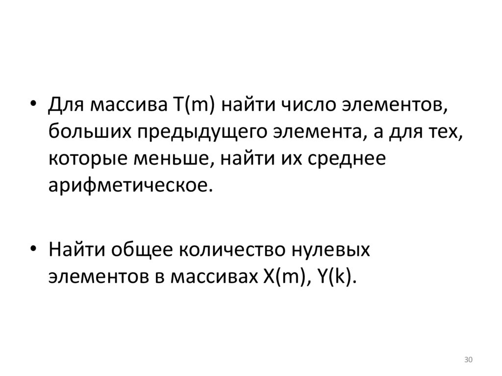 • Для массива T(m) найти число элементов,больших предыдущего элемента, а для тех,
