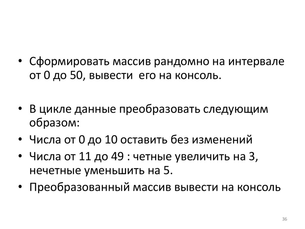 • Сформировать массив рандомно на интервалеот 0 до 50, вывести его на консоль.