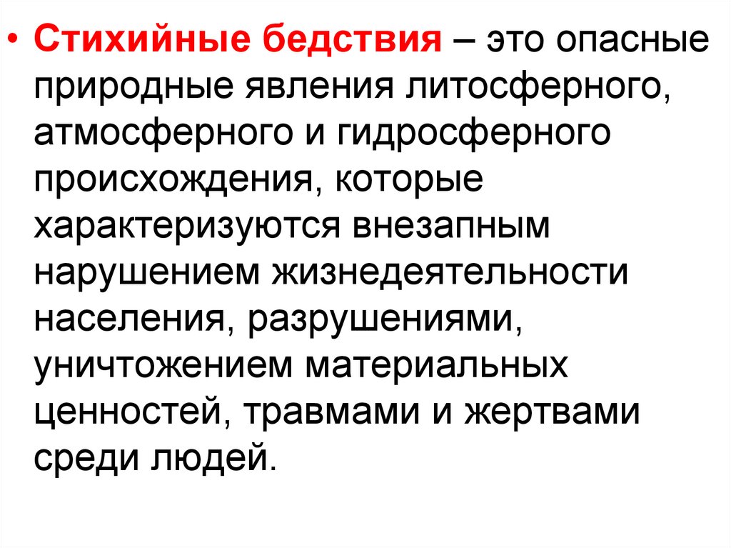 • Стихийные бедствия – это опасныеприродные явления литосферного,