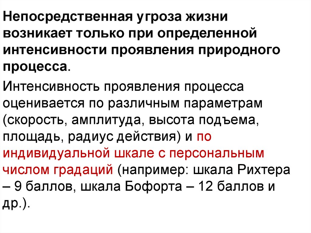 интенсивности проявления природного
