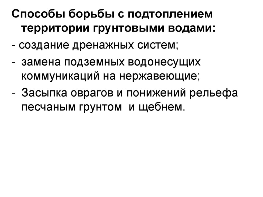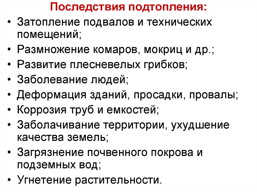 повышение уровня грунтовых вод (подтопление).