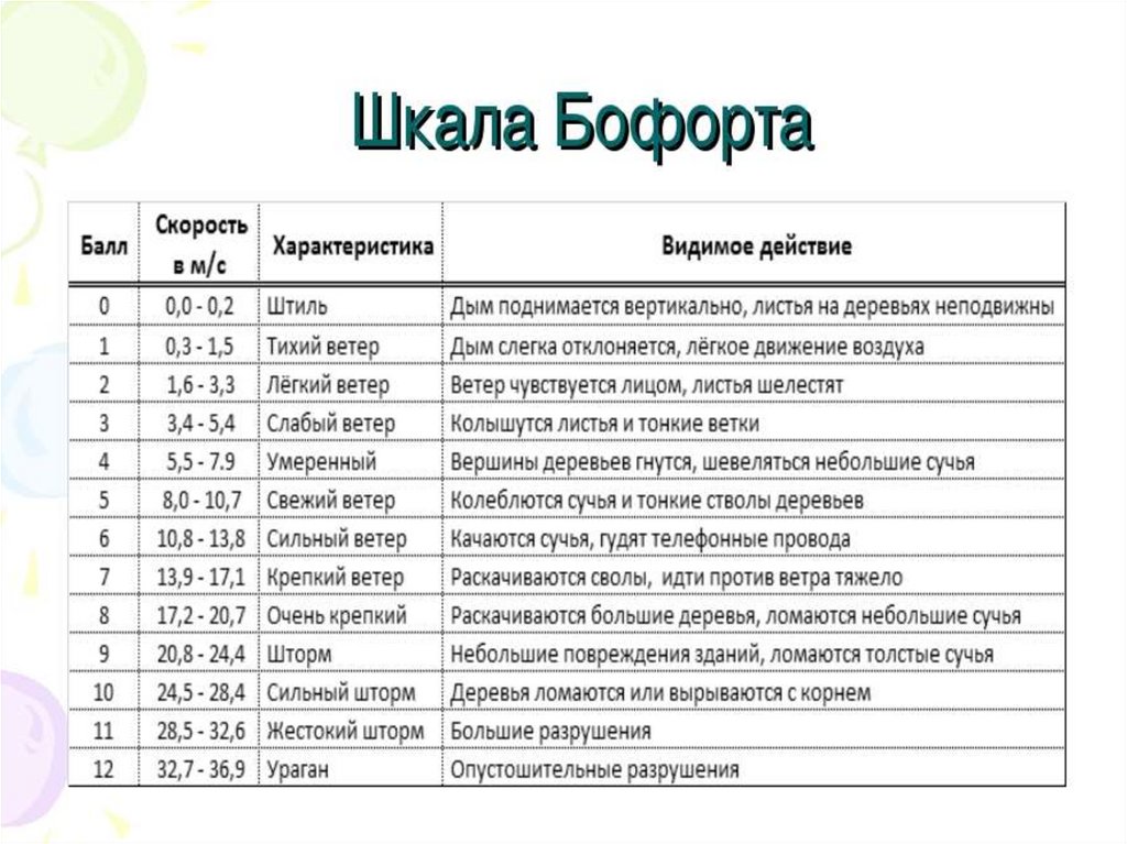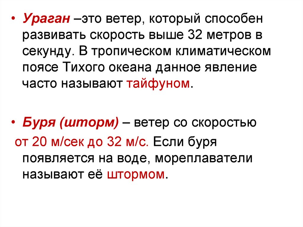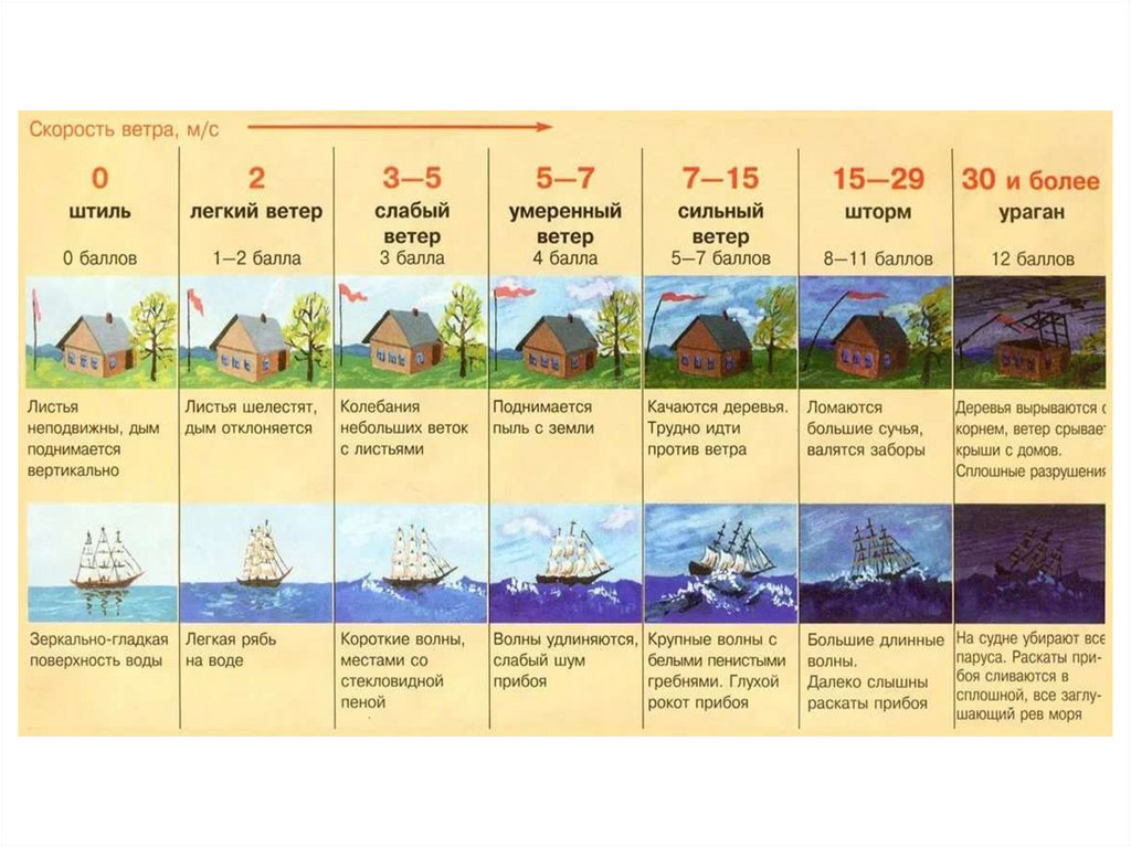 бури (9-12 баллов); ураганы (12-15 баллов); смерчи (торнадо); шквалы;