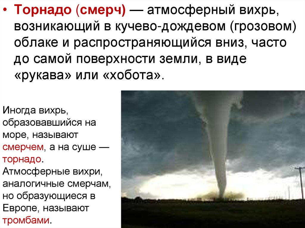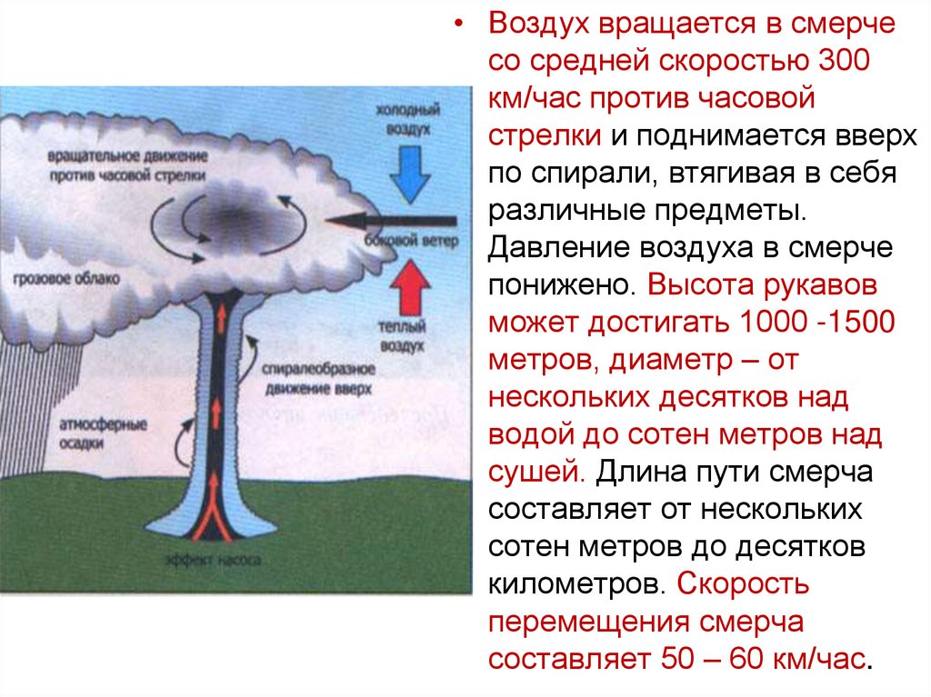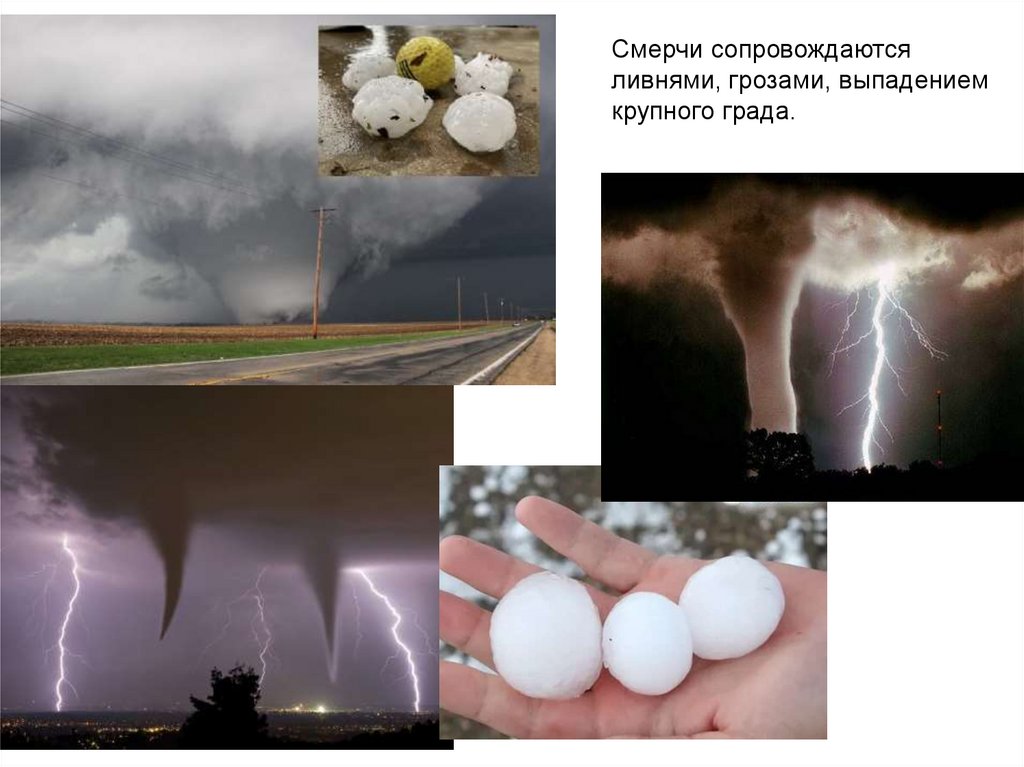 • Штормы, ураганы, смерчи сопровождаются