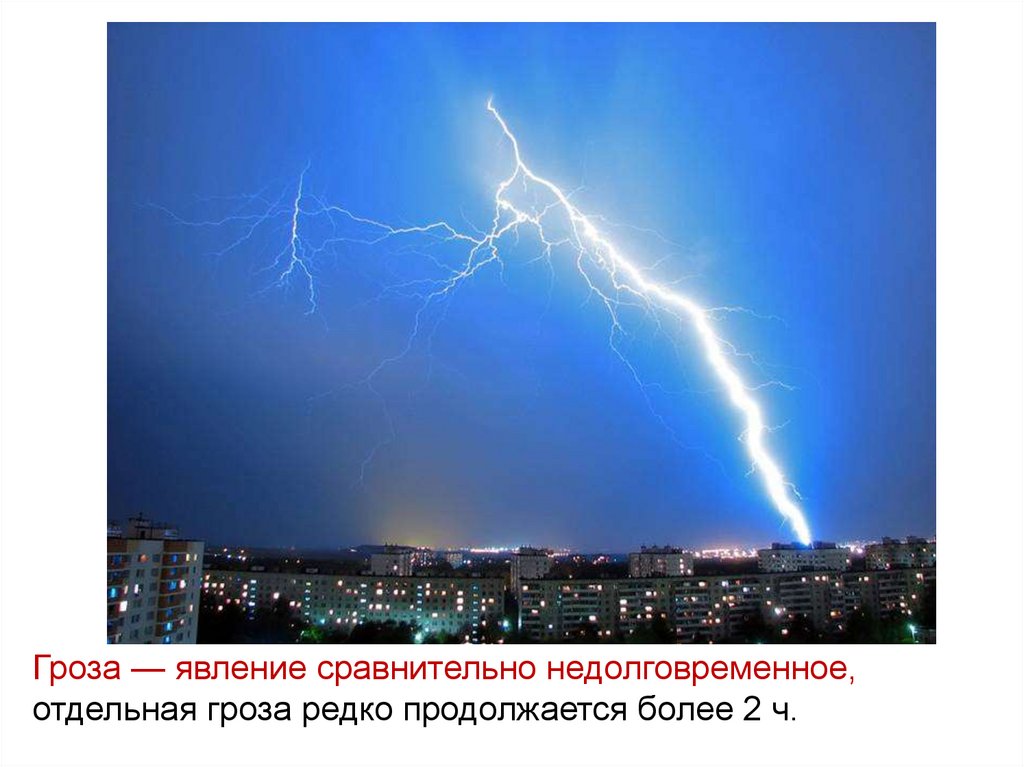 Гроза — явление сравнительно недолговременное,отдельная гроза редко продолжается более 2 ч.