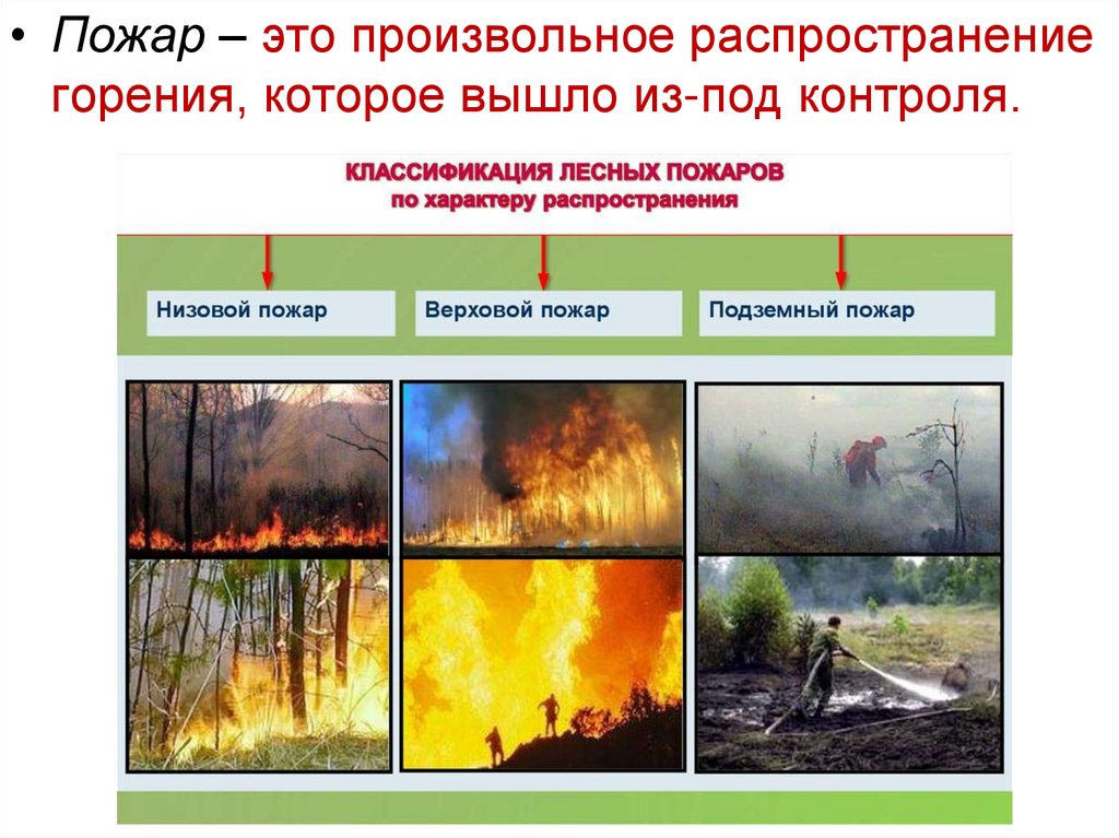 • Пожар – это произвольное распространениегорения, которое вышло из-под контроля.