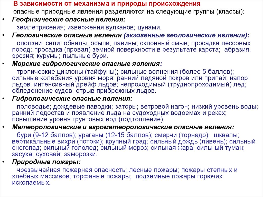 опасные природные явления разделяются на следующие группы (классы):