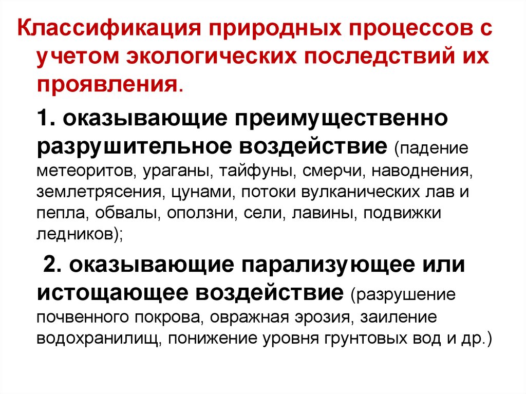 Классификация природных процессов сучетом экологических последствий их
