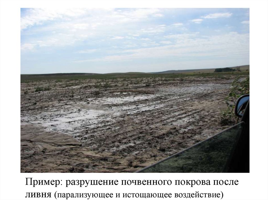 Пример: разрушение почвенного покрова послеливня (парализующее и истощающее воздействие)