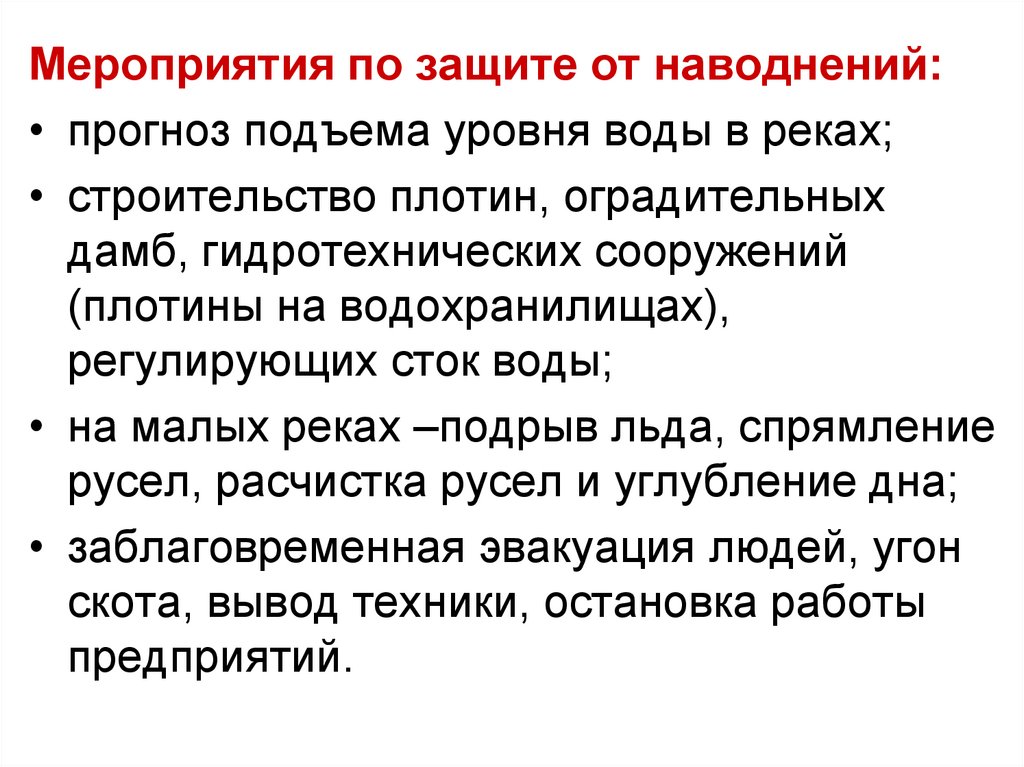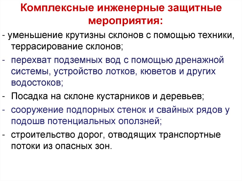 • строительство защитных укрытий.
