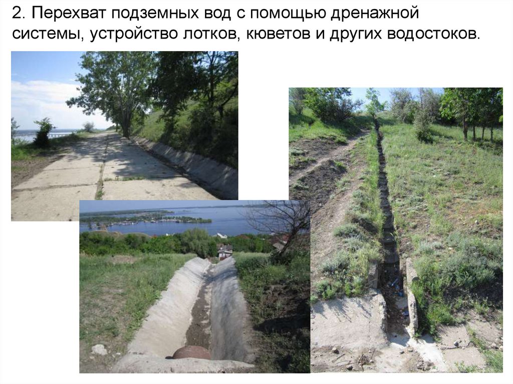 водохранилищ, понижение уровня грунтовых вод и др.)