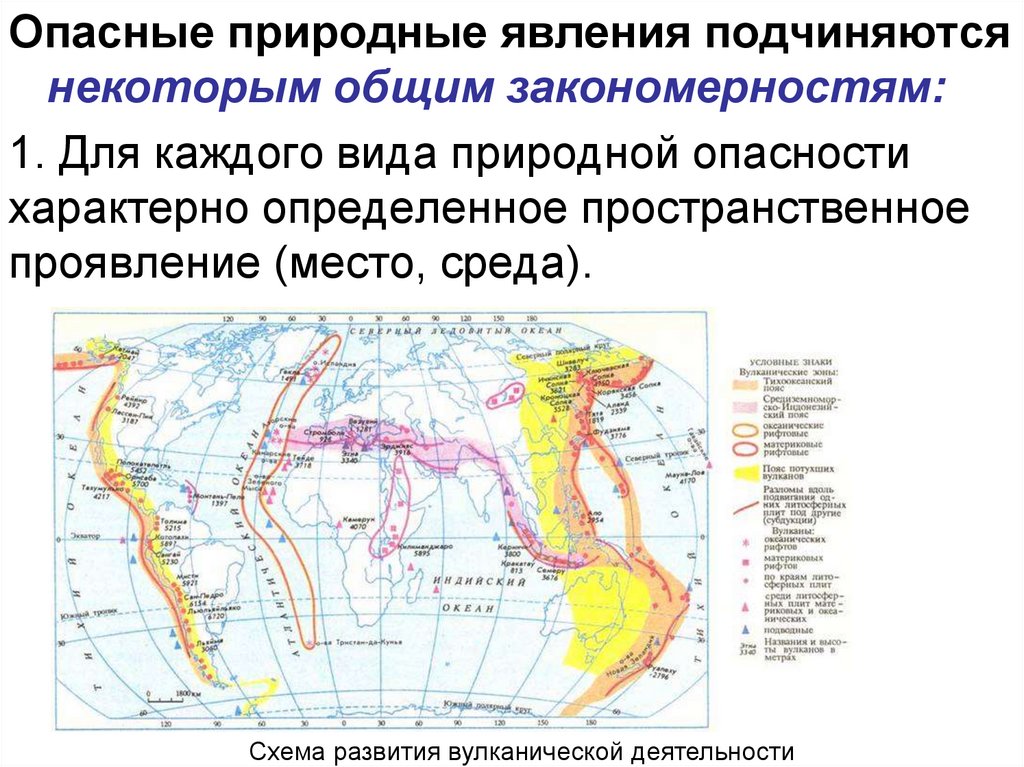 Опасные природные явления подчиняютсянекоторым общим закономерностям: