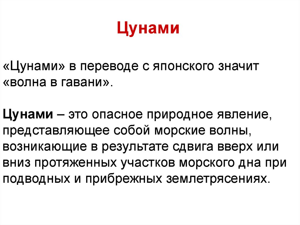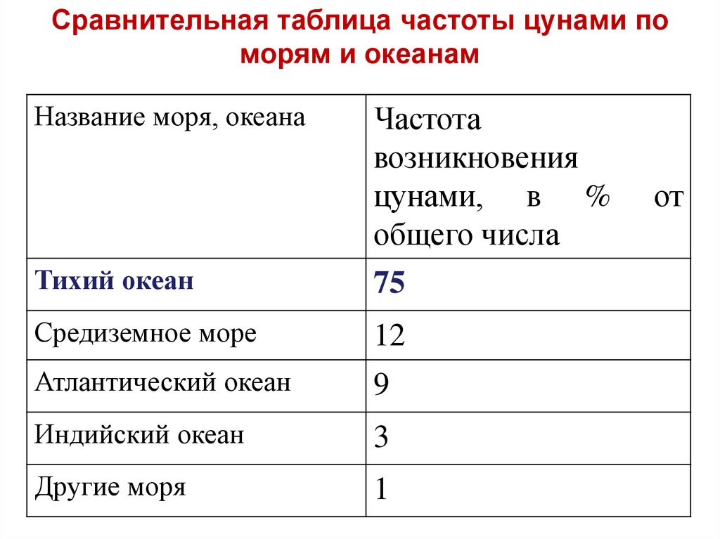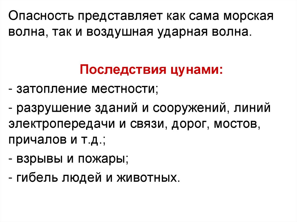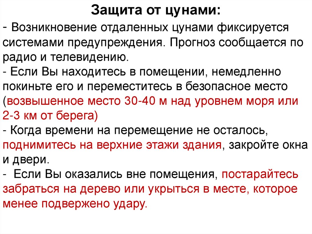 оползней, обвалов и селей, цунами.