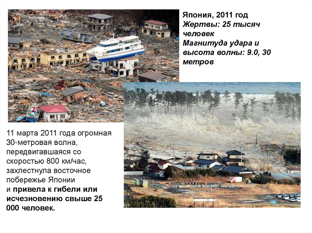 землетрясения, цунами, потоки вулканических лав и