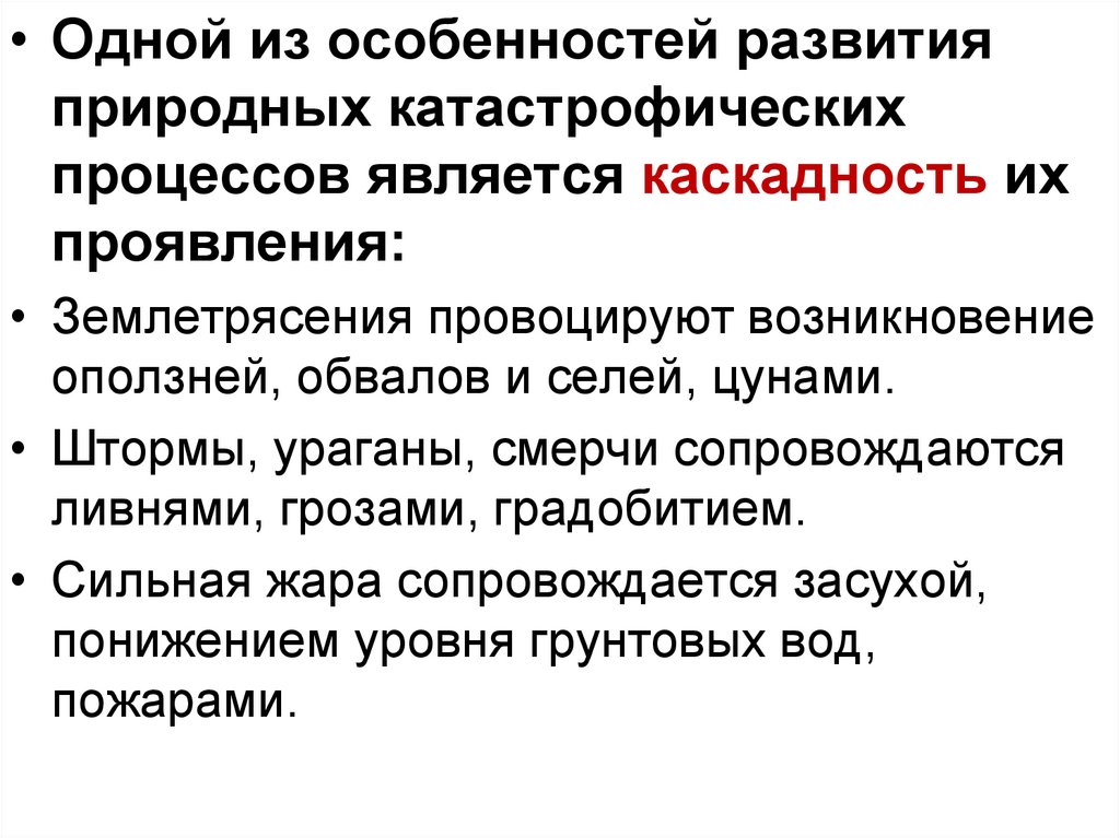 • Одной из особенностей развитияприродных катастрофических