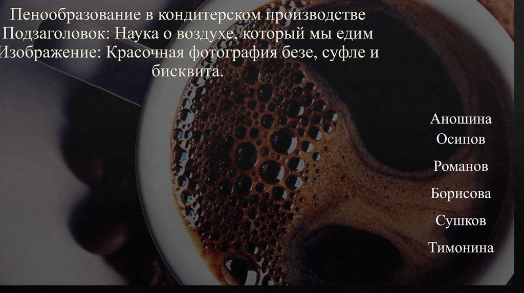 Пенообразование в кондитерском производстве Подзаголовок: Наука о воздухе, который мы едим Изображение: Красочная фотография