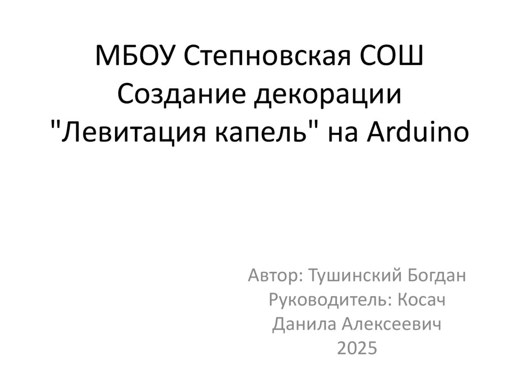 1. МБОУ Степновская СОШ Создание декорации "Левитация капель" на Arduino