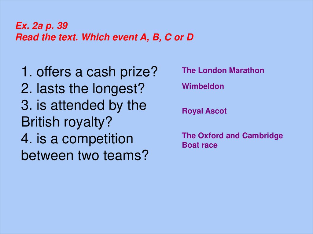 Ex. 2a p. 39Read the text. Which event A, B, C or D