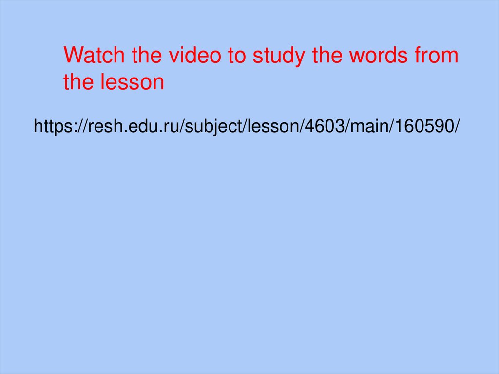 Watch the videohttps://resh.edu.ru/subject/lesson/4603/main/160590/