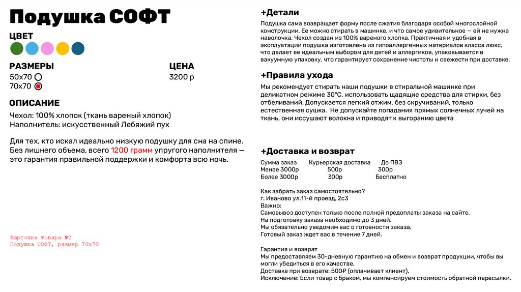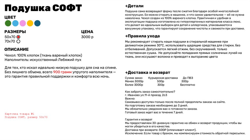 Доставка при возврате: 500₽ (оплачивает клиент).