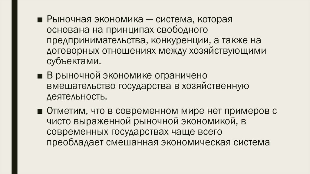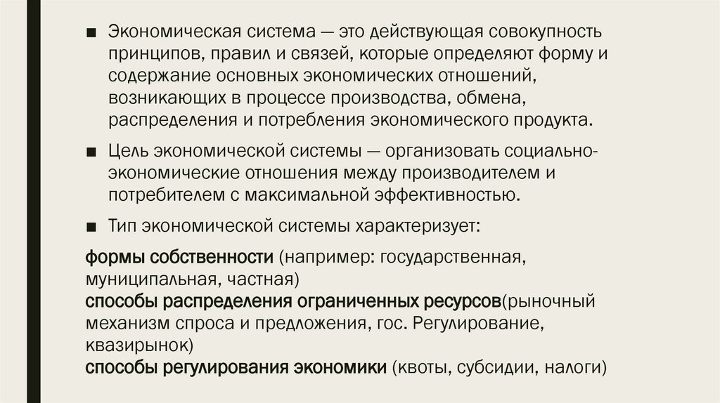 ■ Экономическая система ― это действующая совокупностьпринципов, правил и связей, которые определяют форму и