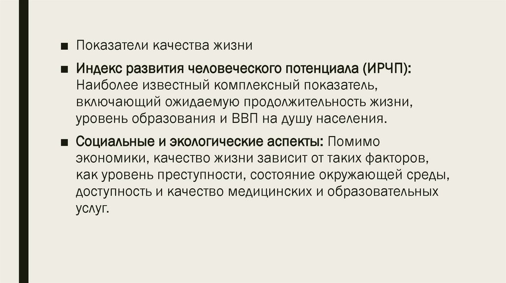 ■ Показатели качества жизни■ Индекс развития человеческого потенциала (ИРЧП):