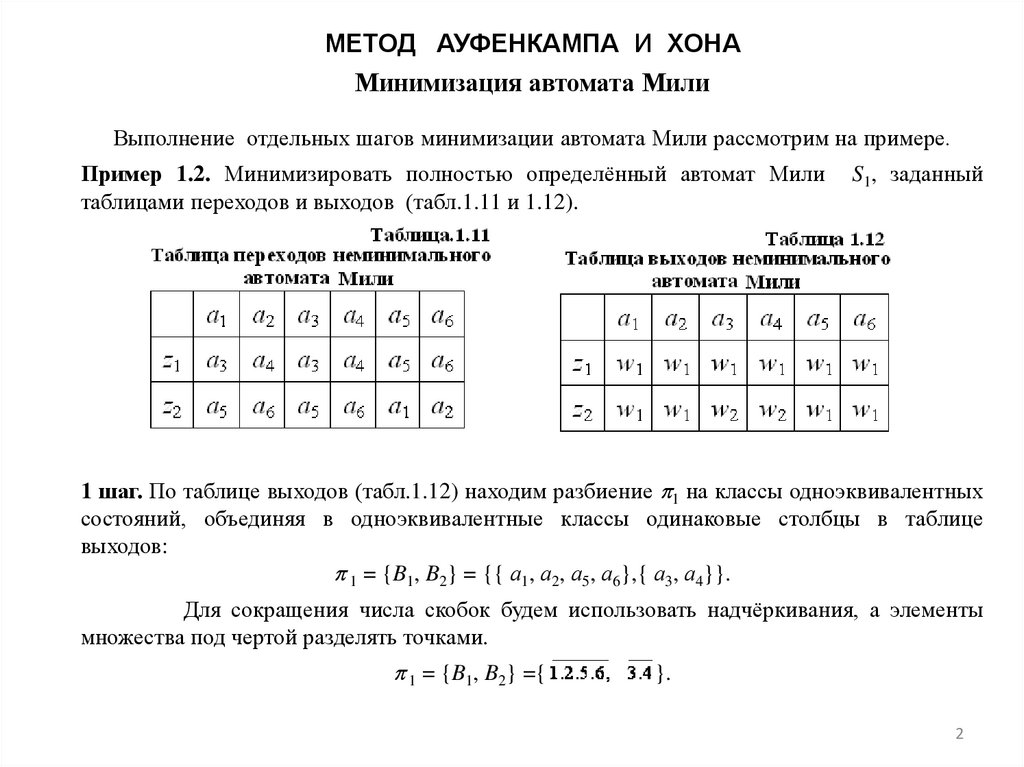 МЕТОД АУФЕНКАМПА И ХОНАМинимизация автомата Мили