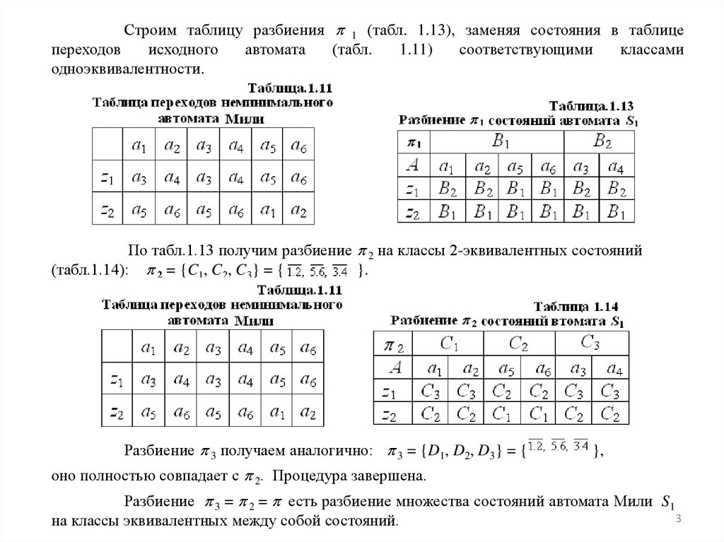 Разбиение 3 = 2 = есть разбиение множества состояний автомата Мили S1