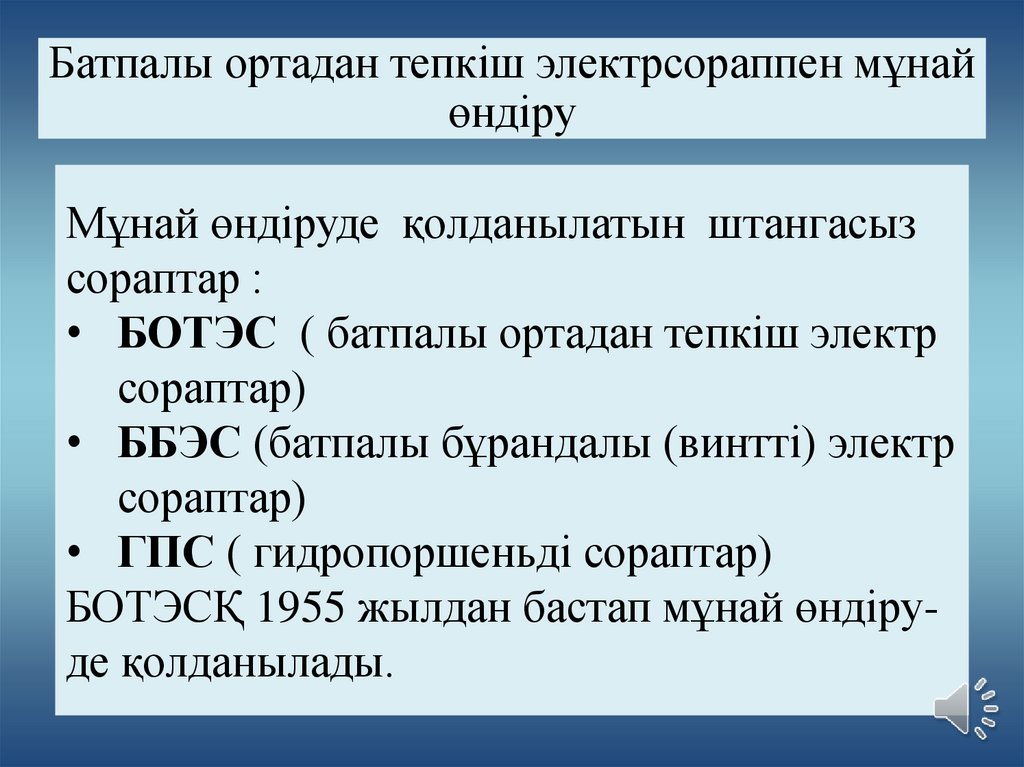 Батпалы ортадан тепкіш электрсораппен мұнайөндіру
