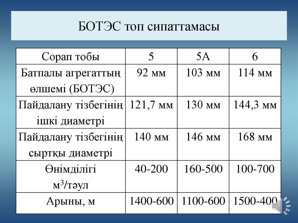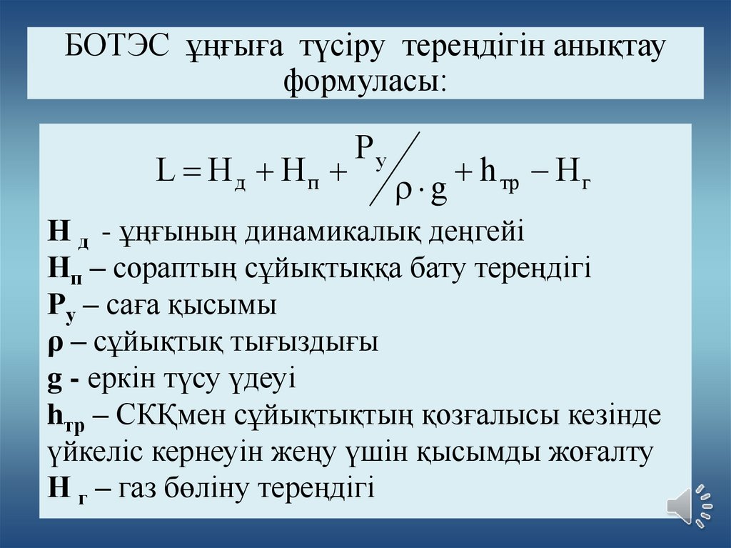 БОТЭС ұңғыға түсіру тереңдігін анықтауформуласы: