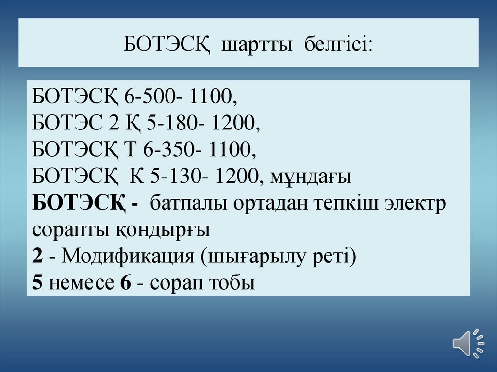 БОТЭСҚ шартты белгісі:БОТЭСҚ 6-500- 1100,
