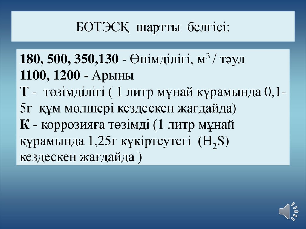 БОТЭСҚ шартты белгісі:180, 500, 350,130 - Өнімділігі, м3 / тәул