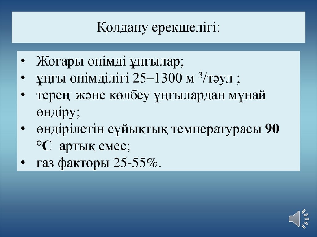 Қолдану ерекшелігі:• Жоғары өнімді ұңғылар;