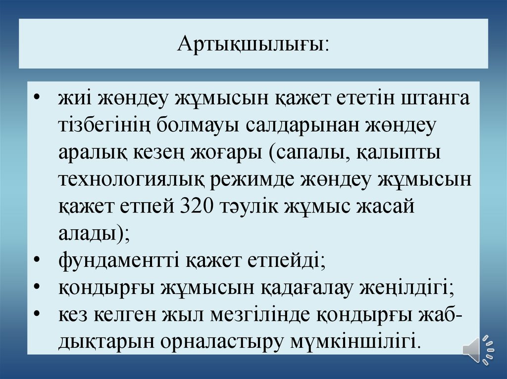 Артықшылығы:• жиі жөндеу жұмысын қажет ететін штанга