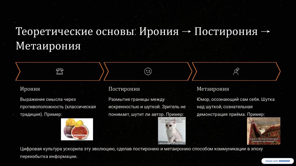 Цифровая культура ускорила эту эволюцию, сделав постиронию и метаиронию способом коммуникации в эпоху
