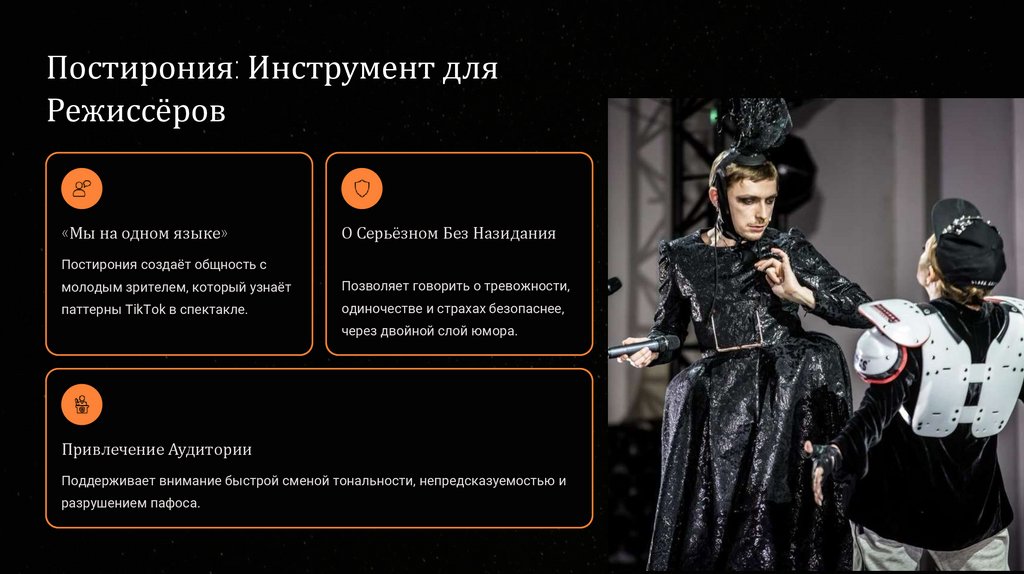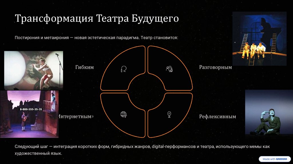 Трансформация Театра БудущегоПостирония и метаирония — новая эстетическая парадигма. Театр становится: