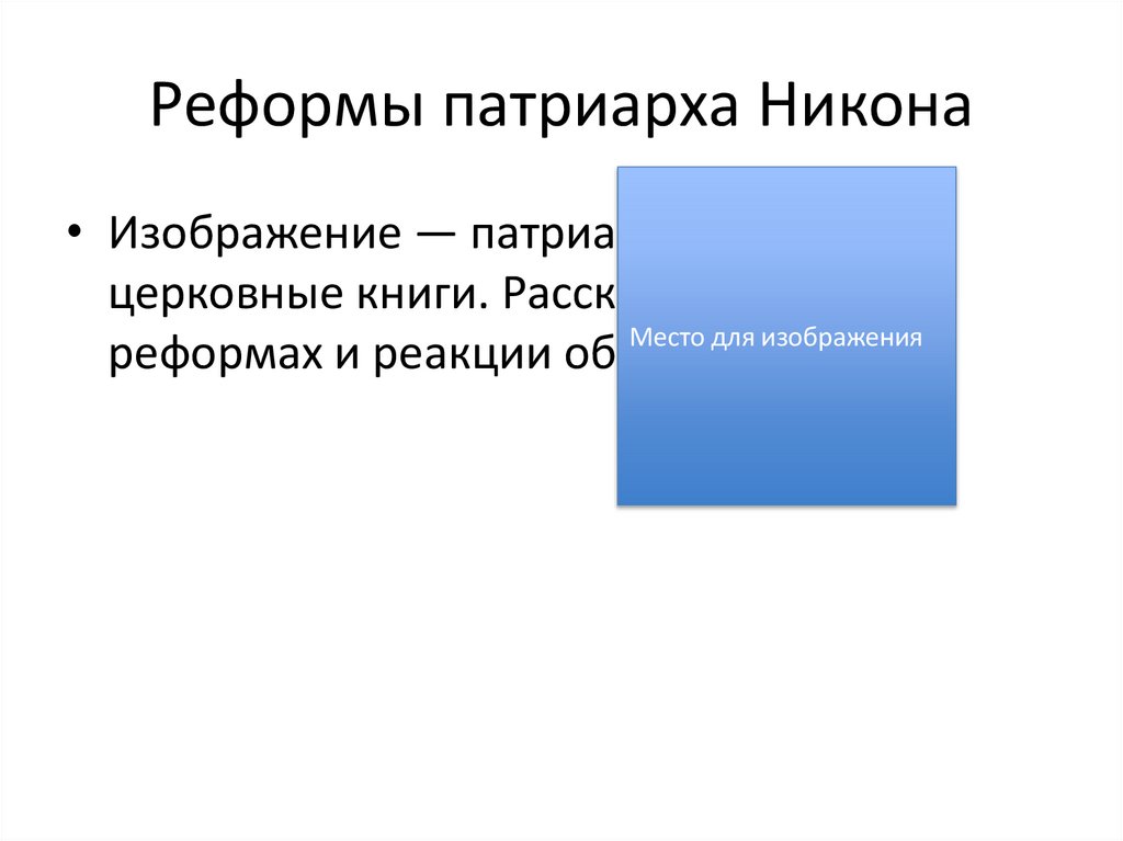 Реформы патриарха Никона• Изображение — патриарх Никон и