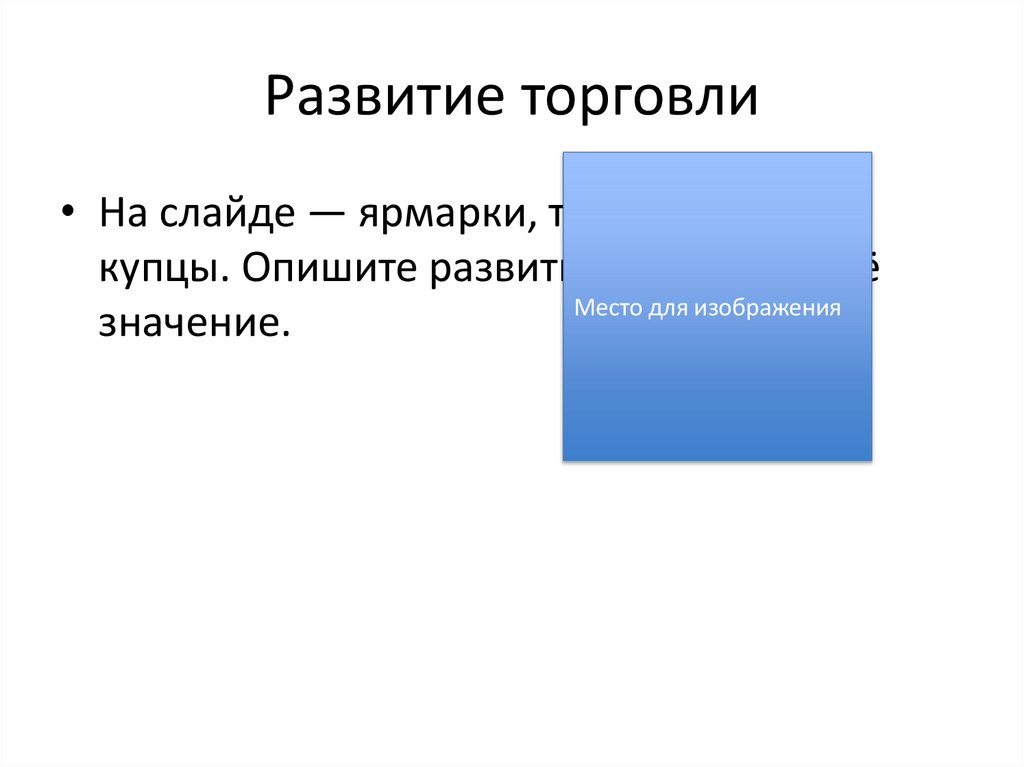 Развитие торговли• На слайде — ярмарки, торговые пути,