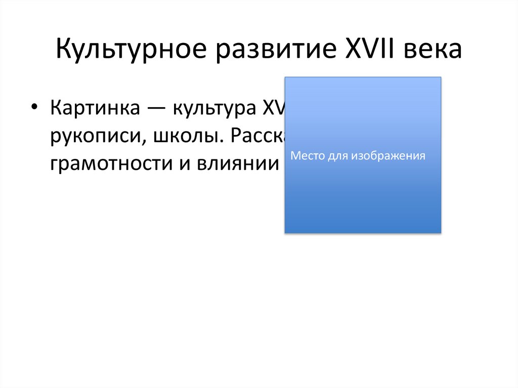 Культурное развитие XVII века• Картинка — культура XVII века: книги,