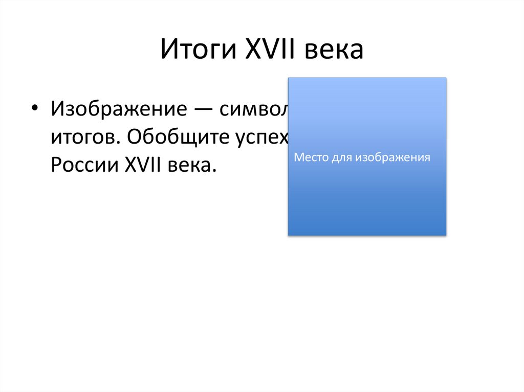 Итоги XVII века• Изображение — символ подведения