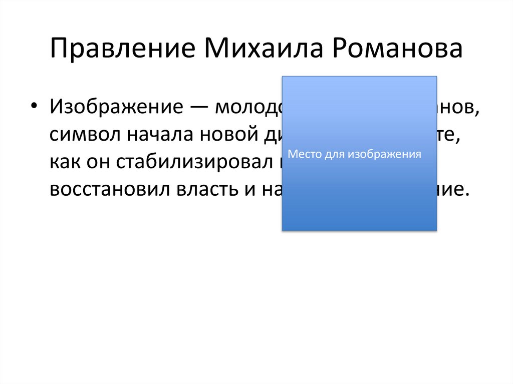 Правление Михаила Романова• Изображение — молодой Михаил Романов,
