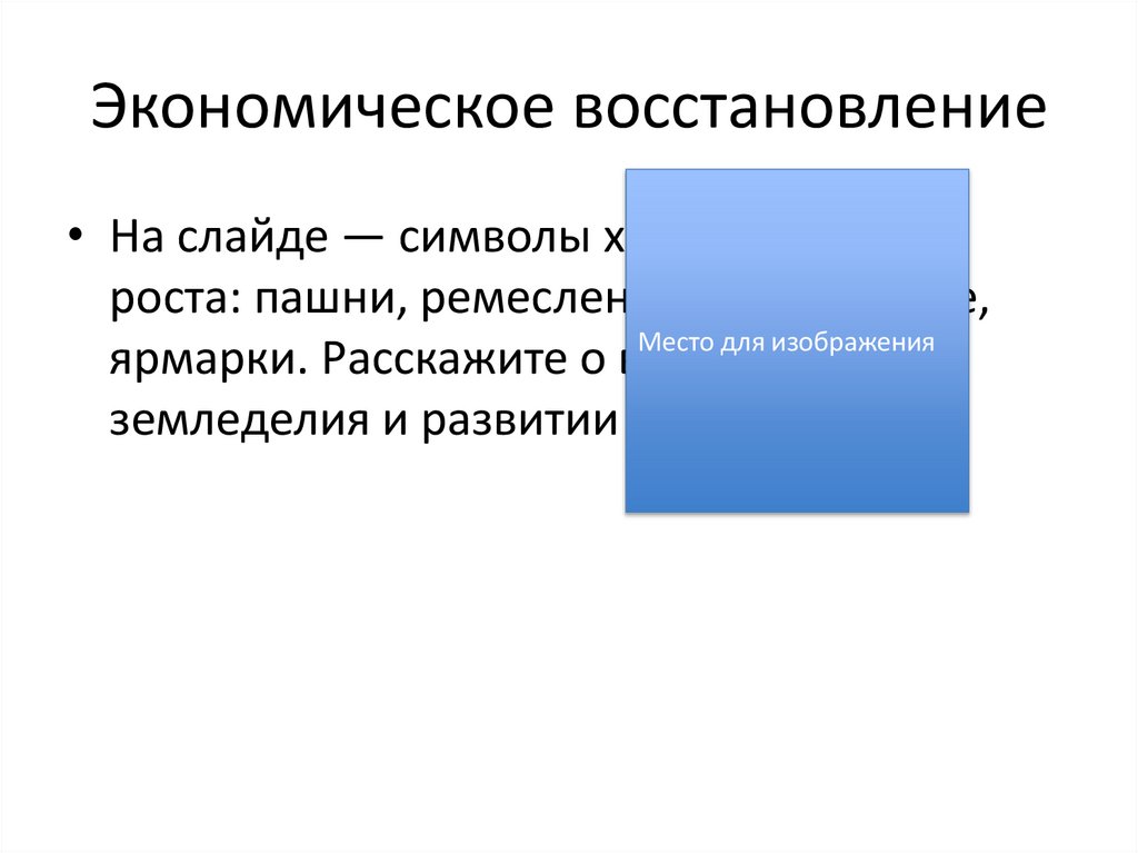 Экономическое восстановление• На слайде — символы хозяйственного
