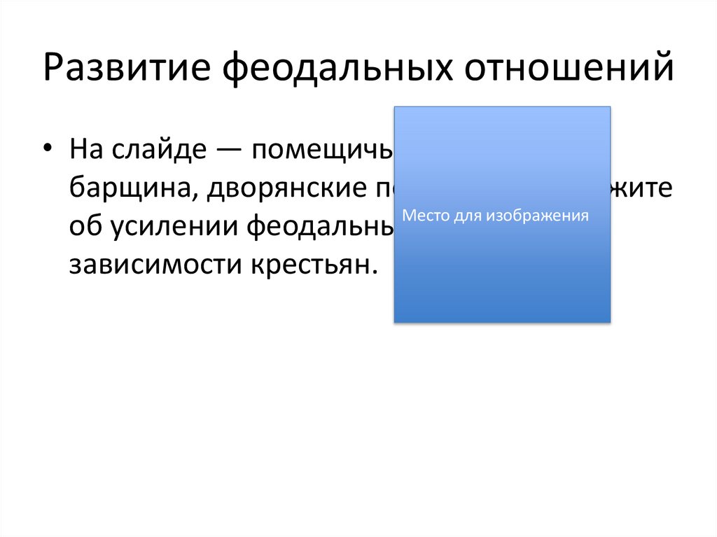 Развитие феодальных отношений• На слайде — помещичье хозяйство,