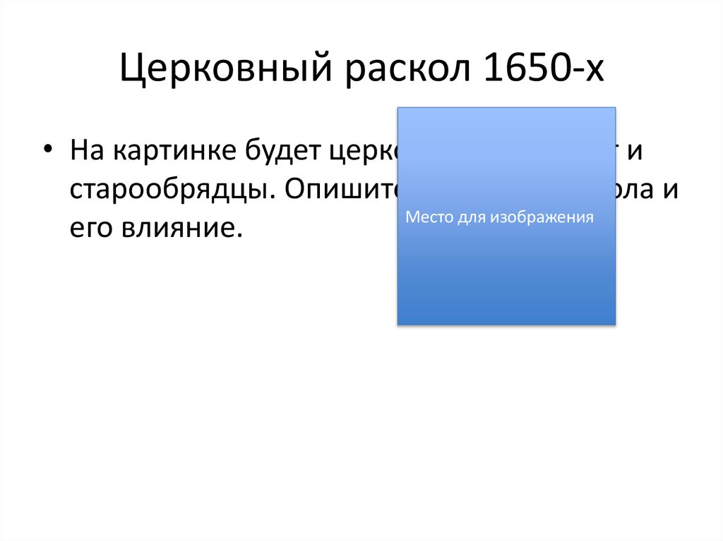 Церковный раскол 1650-х• На картинке будет церковный конфликт и