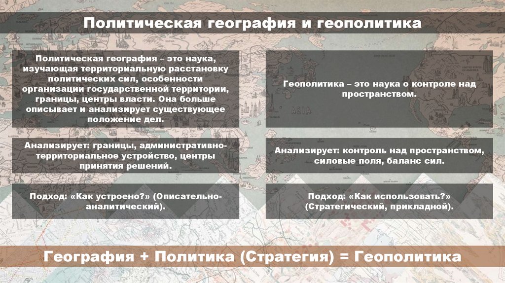 и ресурсами, а также геополитические процессы и явления в мировом сообществе и во времени.
