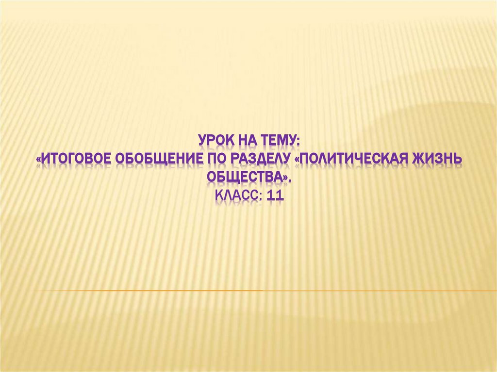 урок на тему: «Итоговое обобщение по разделу «Политическая жизнь общества». Класс: 11