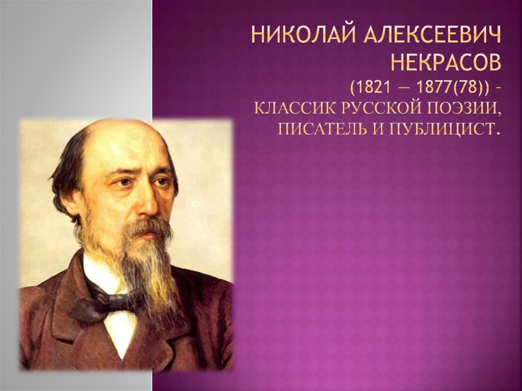 1. Николай Алексеевич Некрасов (1821 — 1877(78)) – классик русской поэзии, писатель и публицист.
